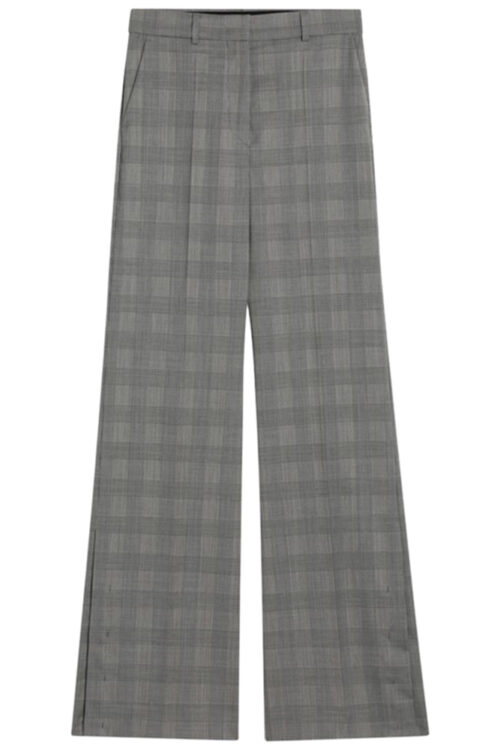 Wide trousers by Max Mara in beige linen fabric, characterized by a wide leg, high waist, pressed crease, side welt pockets, back welt pockets, and closure with a waistband, zip with flap, and hook.