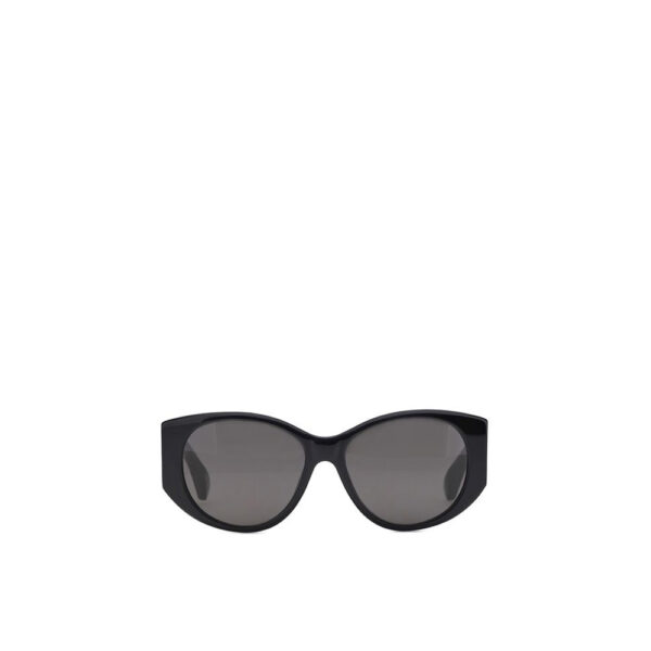 Balenciaga acetate Sunglasses with oval lenses and high temples featuring a contrasting metal logo. A distinctive and sophisticated design for an accessory that combines elegance and modernity.