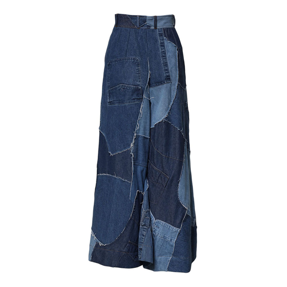 Blue Denim Long Maxi Patchwork Cotton Skirt