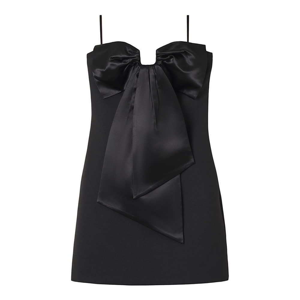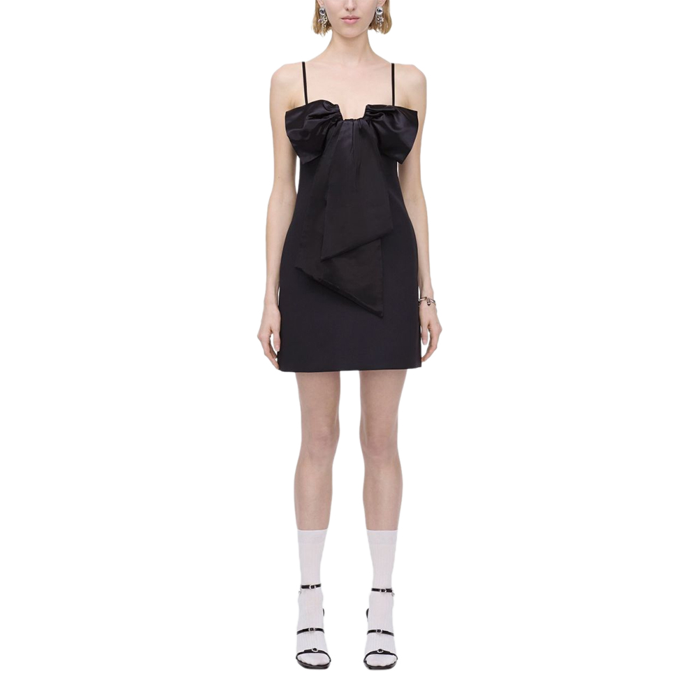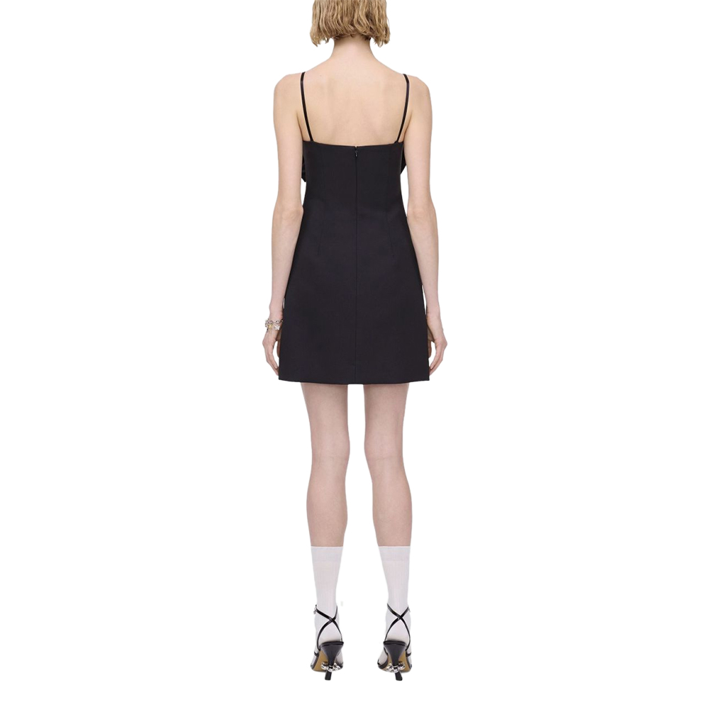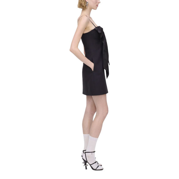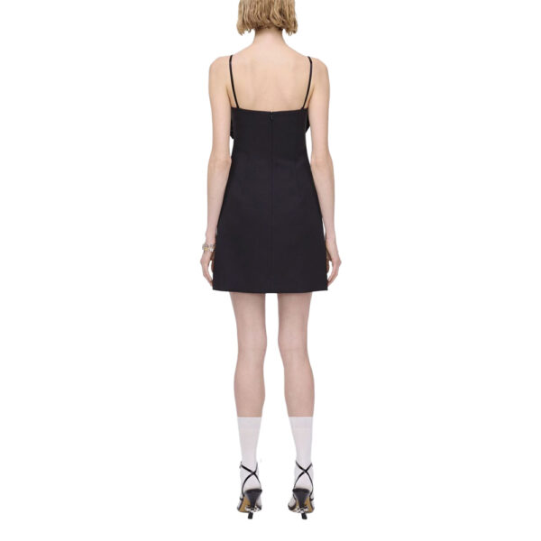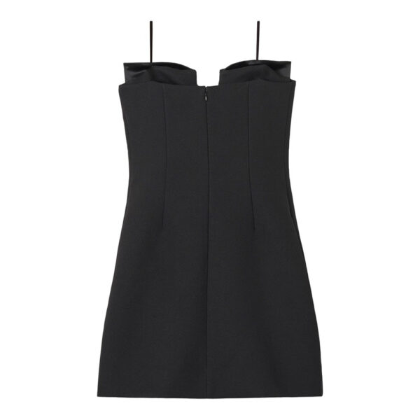 Black rear zip fastening square neck sleeveless straight hem spalline, fuocco Bow detail mini dress