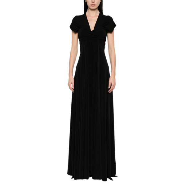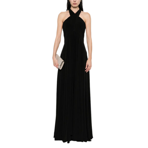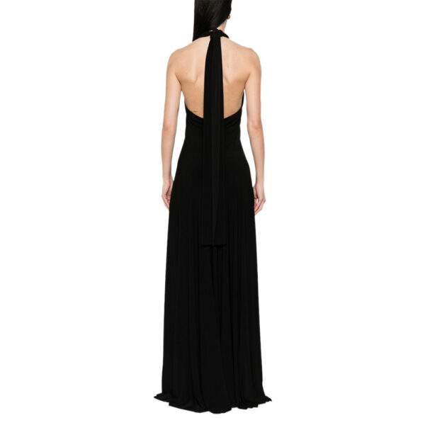 Black halterneck tie fastening open back asymmetric hem This piece can be styled in multiple ways. fascia incrocio Convertible long dress