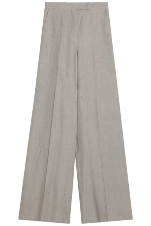 Sportmax pants in virgin wool with a grey and black Prince of Wales pattern, featuring a front zip closure with a hook, belt loops, two side welt pockets, and two back welt pockets.