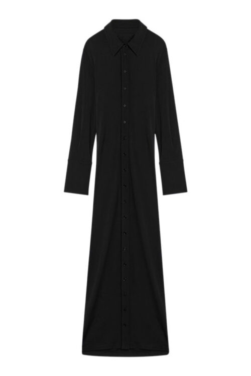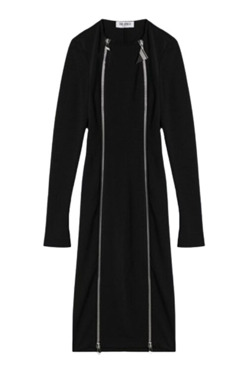 The asymmetrical cotton Dress with wide sleeves by The Attico is a contemporary style statement. Featuring a V-neckline at the front and long, voluminous sleeves, it has a front button closure that emphasizes its casual elegance. The refined design features an asymmetrical silhouette, with the back panel longer than the front, creating a dynamic and sophisticated silhouette. Two wide side sashes, which can be knotted and passed over the shoulder or worn loosely in a sarong style, add versatility and a tailored touch. The semi-transparent animal-patterned fabric completes the look with bold, sensual elegance.