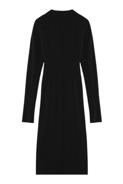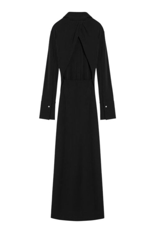 The asymmetrical cotton Dress with wide sleeves by The Attico is a contemporary style statement. Featuring a V-neckline at the front and long, voluminous sleeves, it has a front button closure that emphasizes its casual elegance. The refined design features an asymmetrical silhouette, with the back panel longer than the front, creating a dynamic and sophisticated silhouette. Two wide side sashes, which can be knotted and passed over the shoulder or worn loosely in a sarong style, add versatility and a tailored touch. The semi-transparent animal-patterned fabric completes the look with bold, sensual elegance.