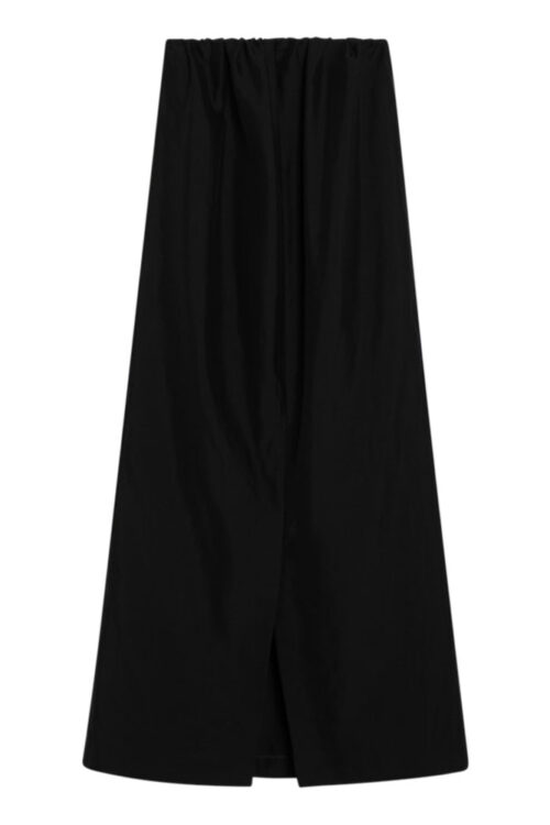 Chocolate brown cotton long skirt from Brunello Cucinelli featuring a zip, hook and button fastening, two side welt pockets, waist loops, front darts, a front slit, a striped pattern with tone-on-tone sequins and a silk blend lining.