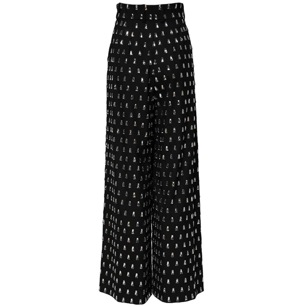 Black Crystal Embellished Wide Leg Pants