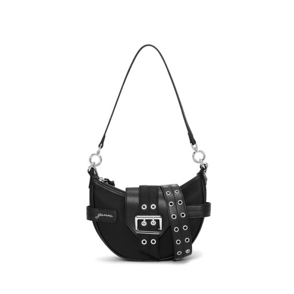 black recycled nylon embossed logo to the front front buckle fastening top zip fastening detachable shoulder strap adjustable detachable shoulder strap main compartment This piece comes complete with a protective dust bag. This item is made from at least 50% recycled or upcycled materials. For recycled synthetic clothing products, we highly recommend using a microfibre-catching washing bag to ensure that no microplastics that can pollute water are released in the process. We’ve partnered with Good On You — an independent agency that rates how brands perform in relation to their impact on the planet, people and animals, with a multi-criteria rating simplified to a five points scale. In order to be awarded our conscious label, larger brands need to score a minimum of four out of five (‘Good’), while smaller brands must score at least three out of five (‘It’s A Start’). This item comes from a brand rated three out of five (‘It’s A Start’) by Good on You at the time it was added on FARFET small Bucky small nylon crossbody bag