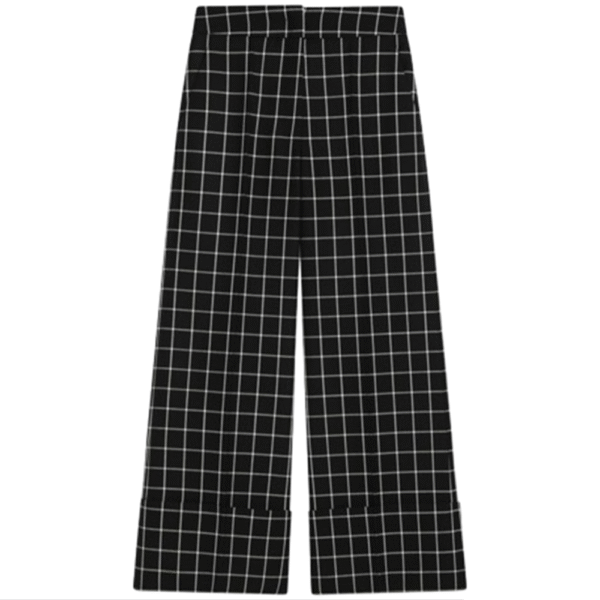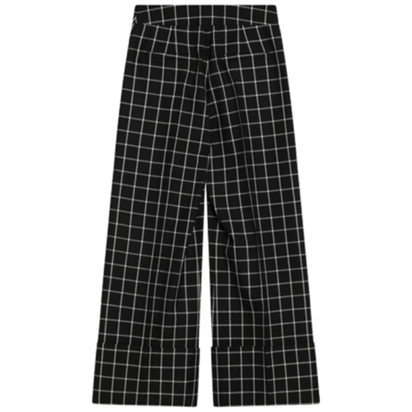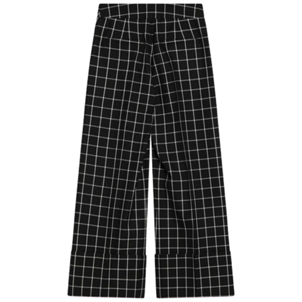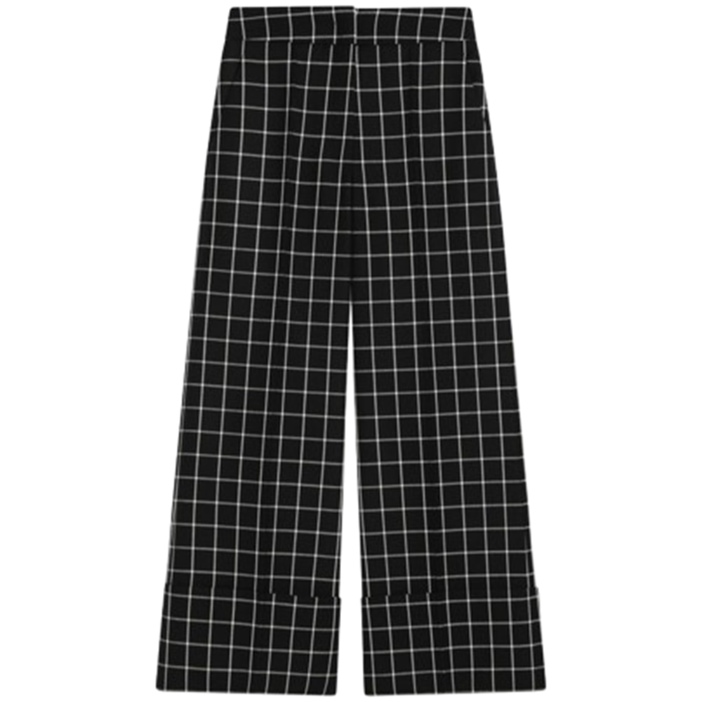 Black virgin wool Valentino trousers in ivory check, featuring a high waist, two side welt pockets, two back welt pockets, a front pleat and a turn-up at the bottom of the leg.