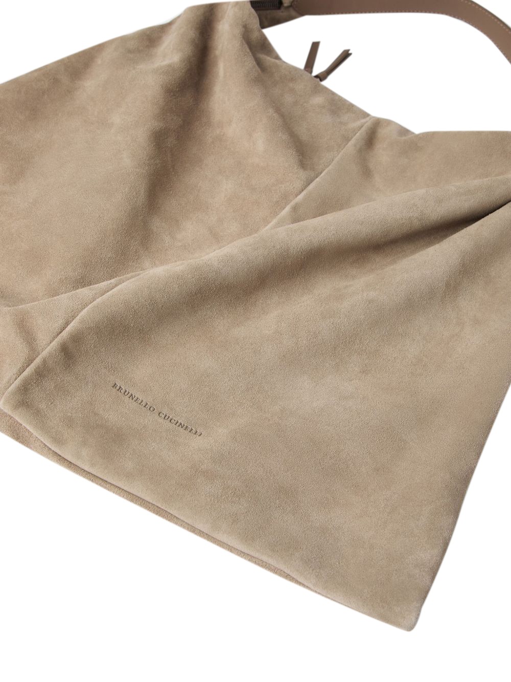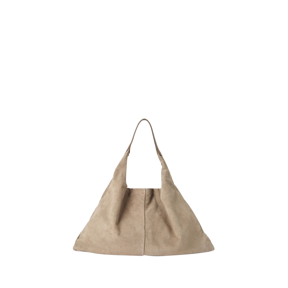 light grey two-way zip fastening side zip fastening single top handle debossed logo to the front swing hobo Suede Swing hobo bag