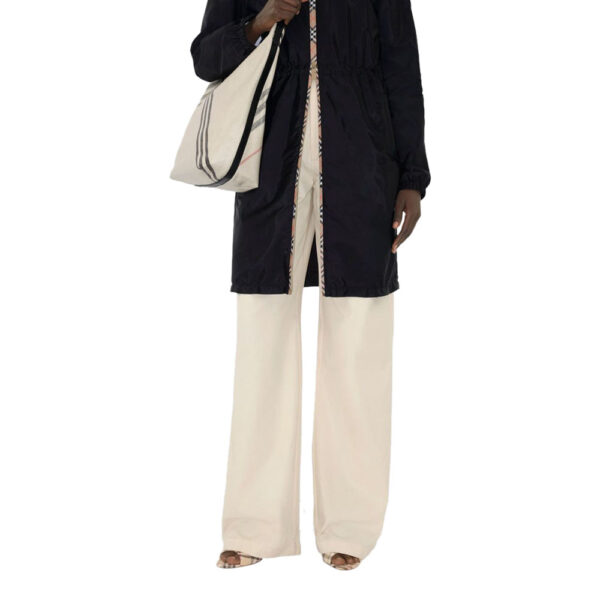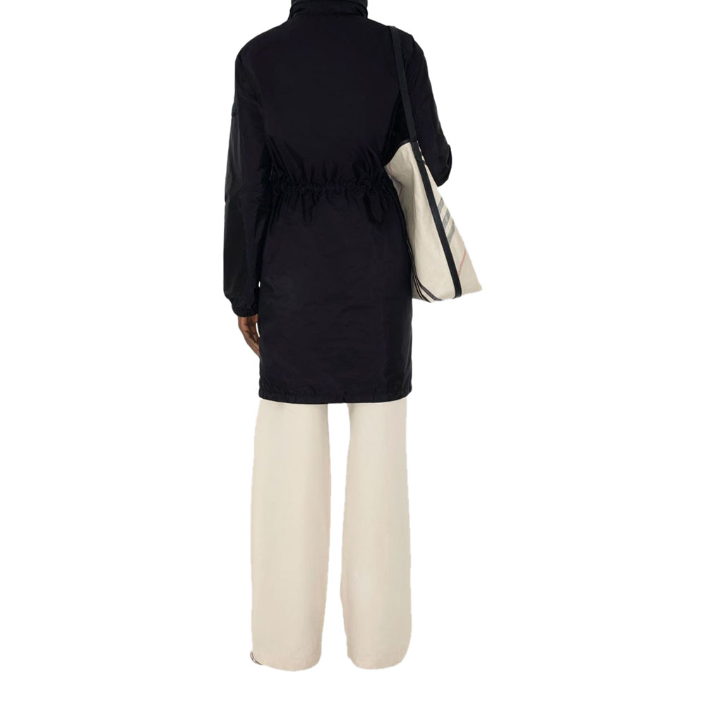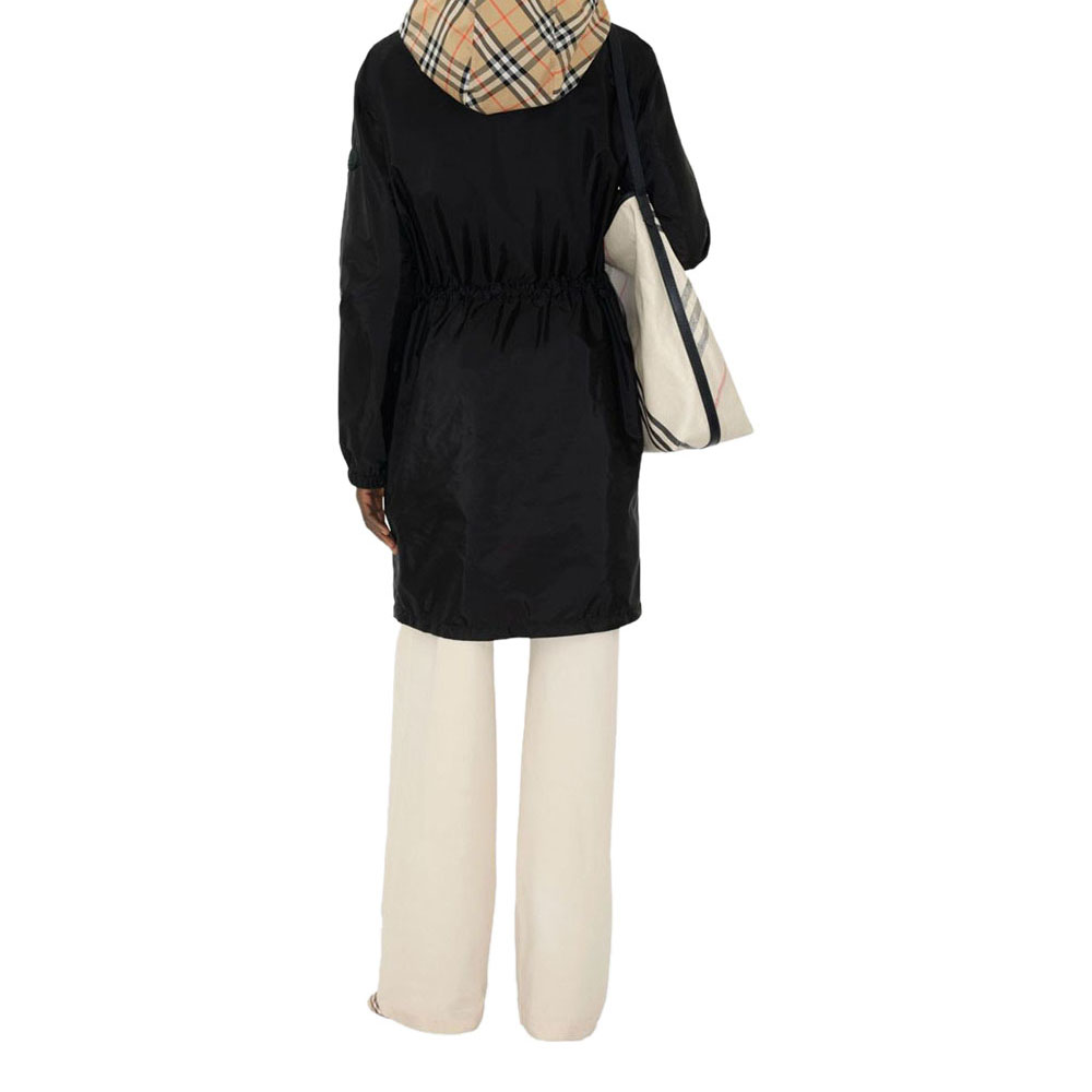 Black front two-way zip fastening two side welt pockets elasticated waistband signature Equestrian Knight motif midi, profilo zip e cappuccio check motif nylon rain jacket