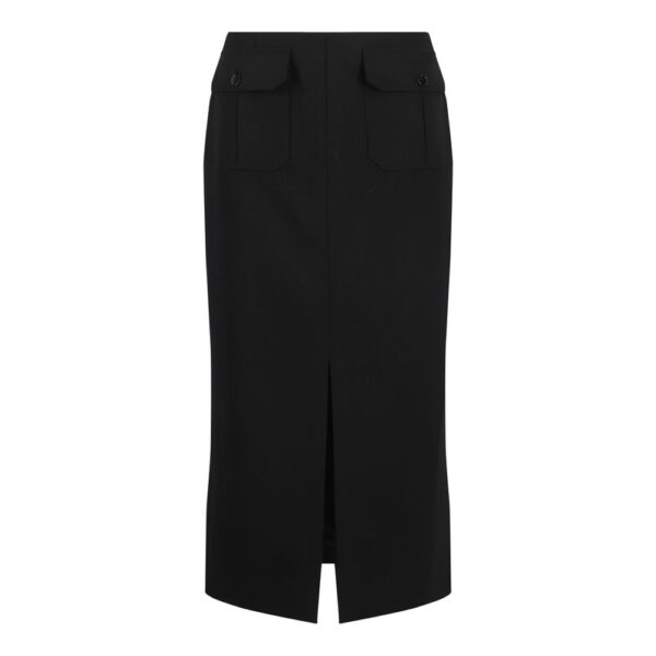 Virgin Wool Midi Skirt by Chloé, back zipper closure, two front patch flap pockets, front slit, monochrome pattern, regular fit.