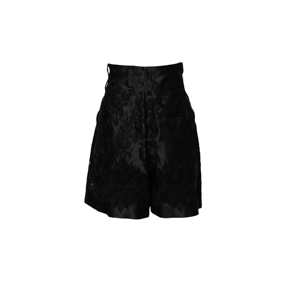 Black Floral Embroidery Silk High Waist Shorts