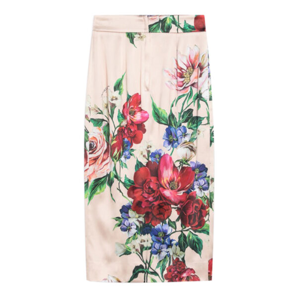 Colourful floral print viscose blend longuette skirt from Dolce & Gabbana featuring a high waist, a back zip fastening and a back slit.