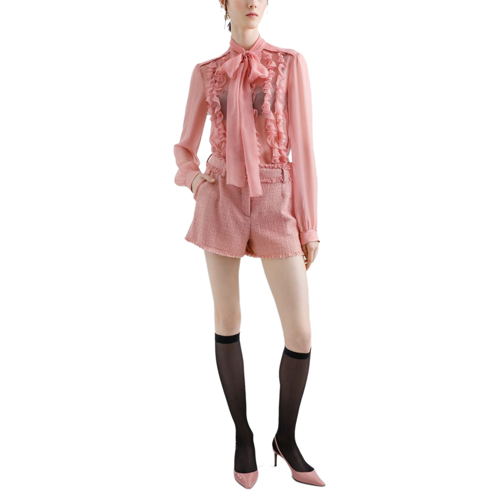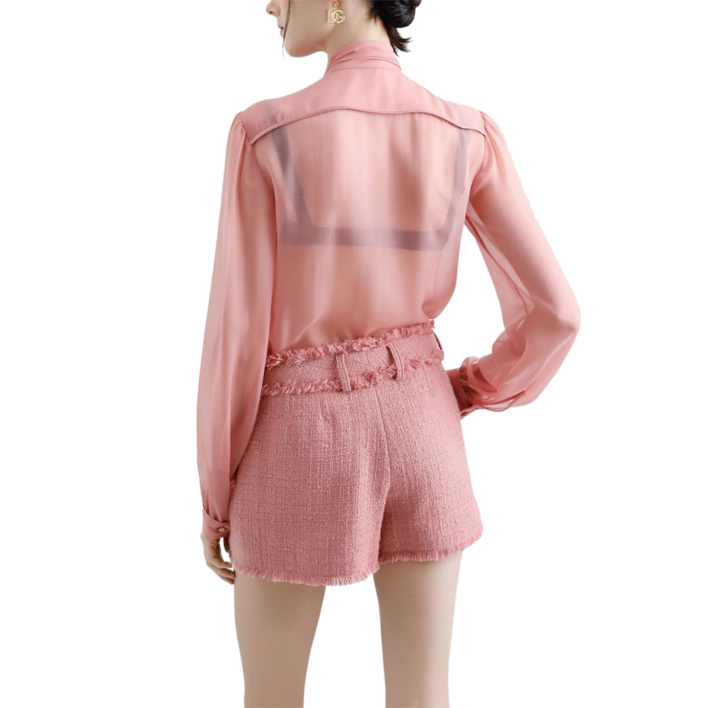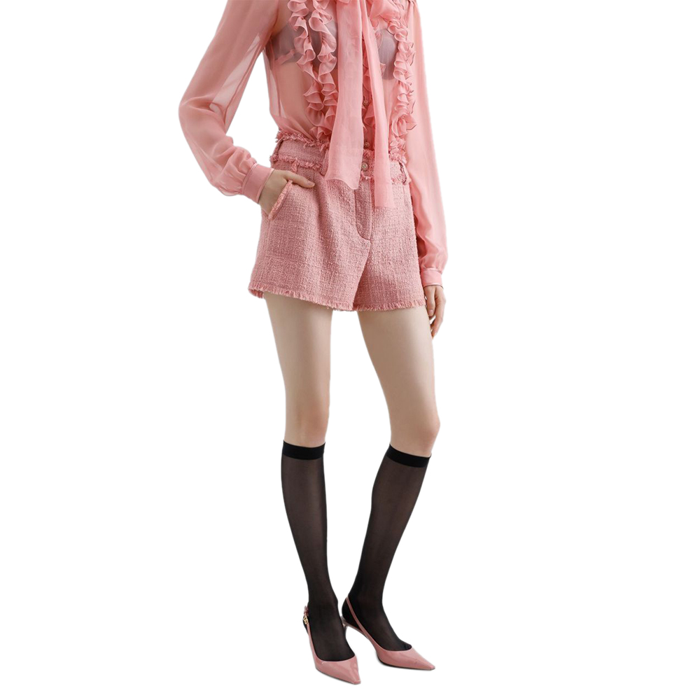 rose pink concealed fly and button fastening two side slash pockets belt loops frayed detailing vita a sacchetto Cotton shorts