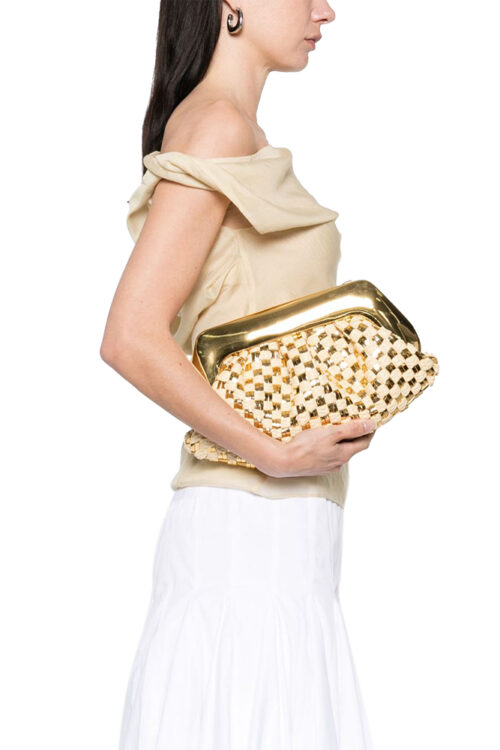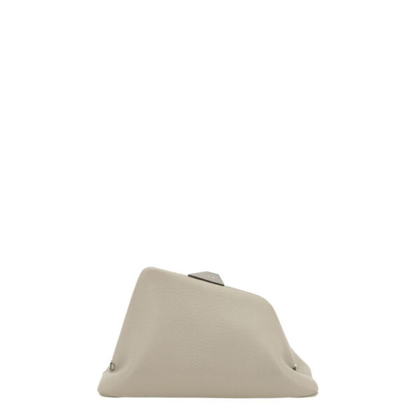 Leather Day Off Shoulder Bag by The Attico, geometric shape, closure by top magnetic snap system, interior flat pocket, flat metal support feet, hand carry, removable and adjustable flat shoulder strap.