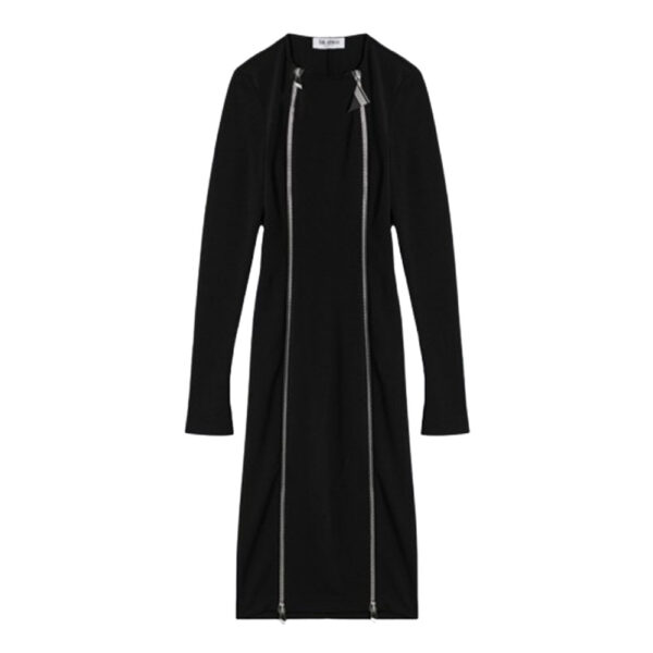 Black sablé midi dress by The Attico, featuring long sleeves, a slim fit and two exposed zips at the front with logoed zip pulls.
