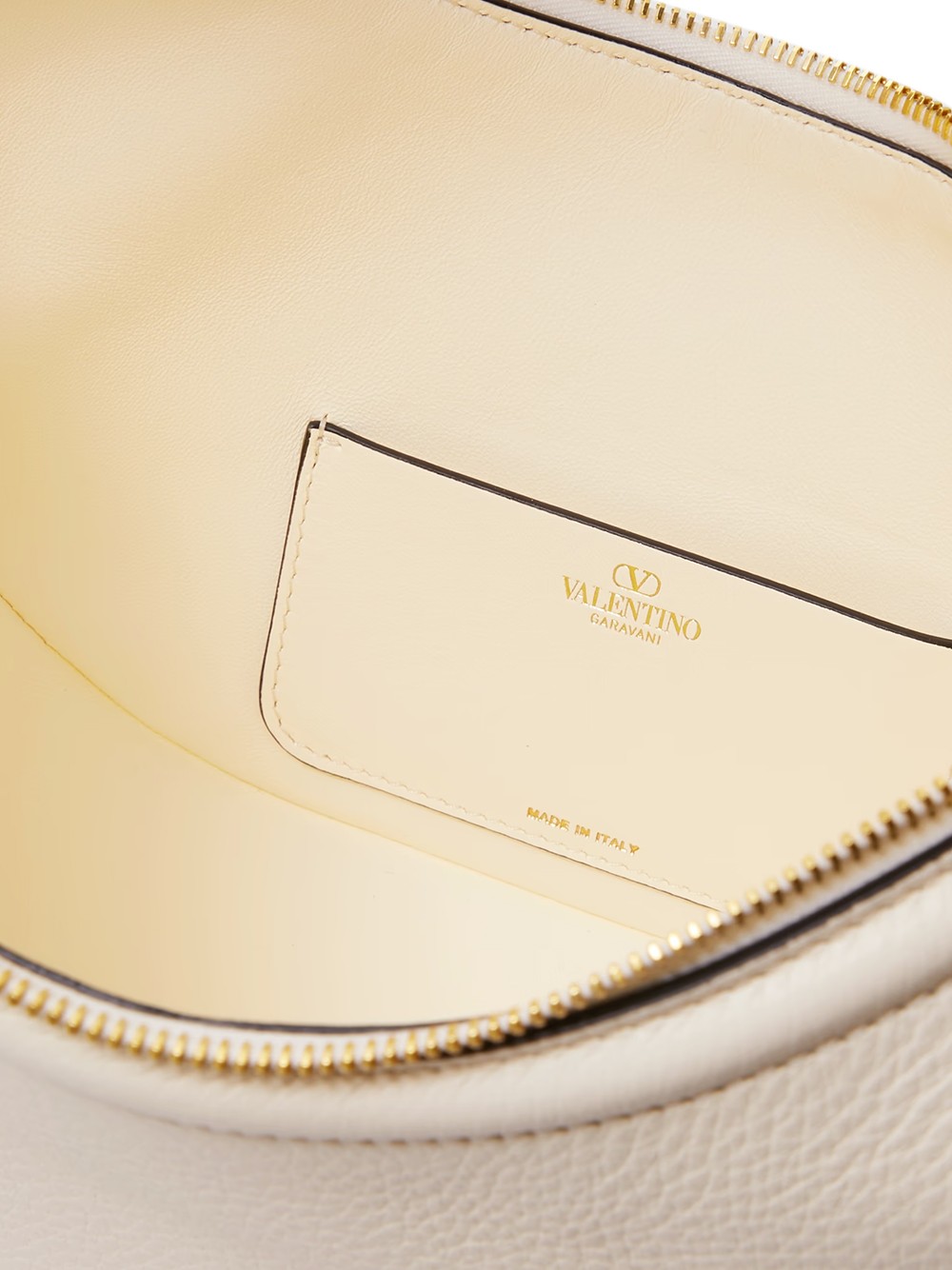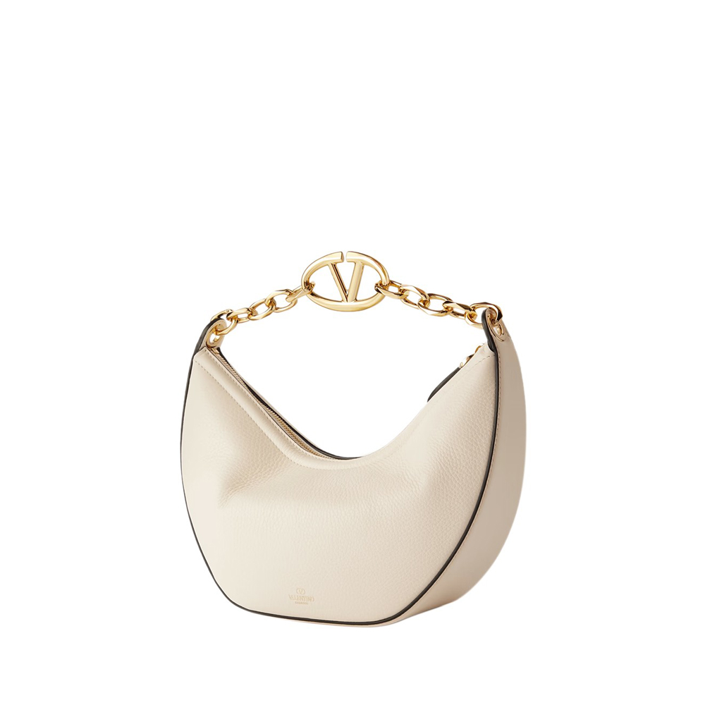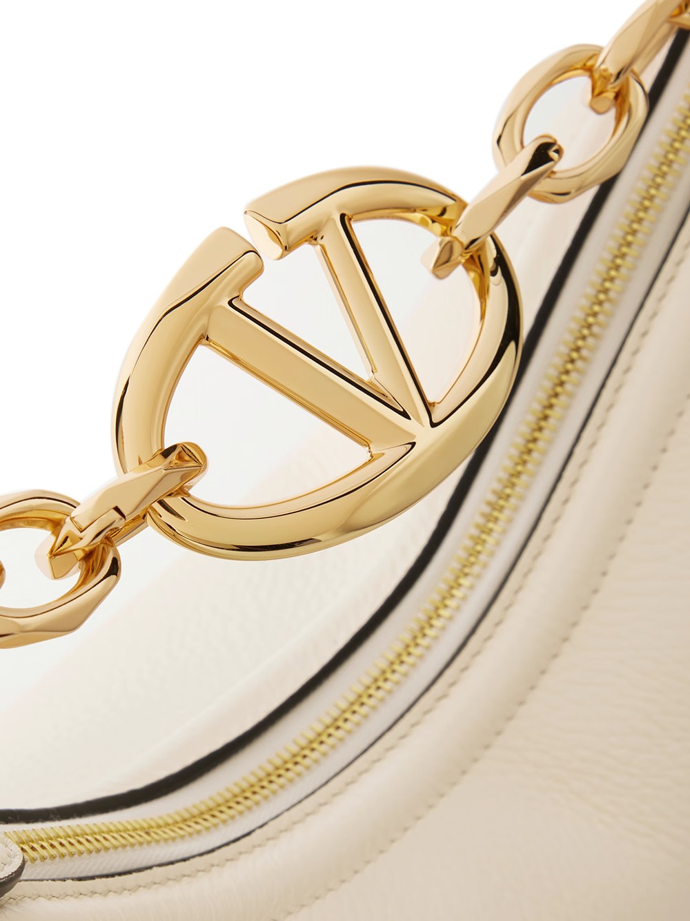 Ivory Leather Small Hobo Vlogo Shoulder Bag