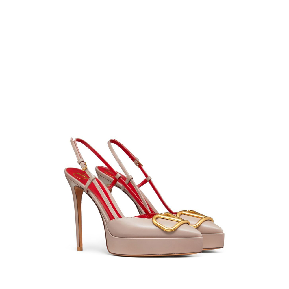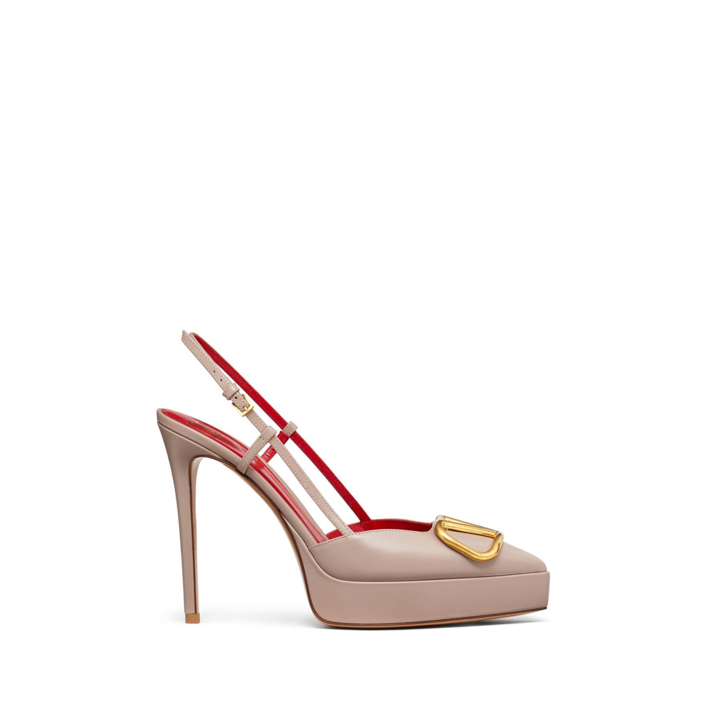 Blush beige calf leather VLogo Signature pointed toe buckle-fastening slingback strap platform sole 120mm stiletto heel plateau tacco 120 VLogo Signature leather pumps