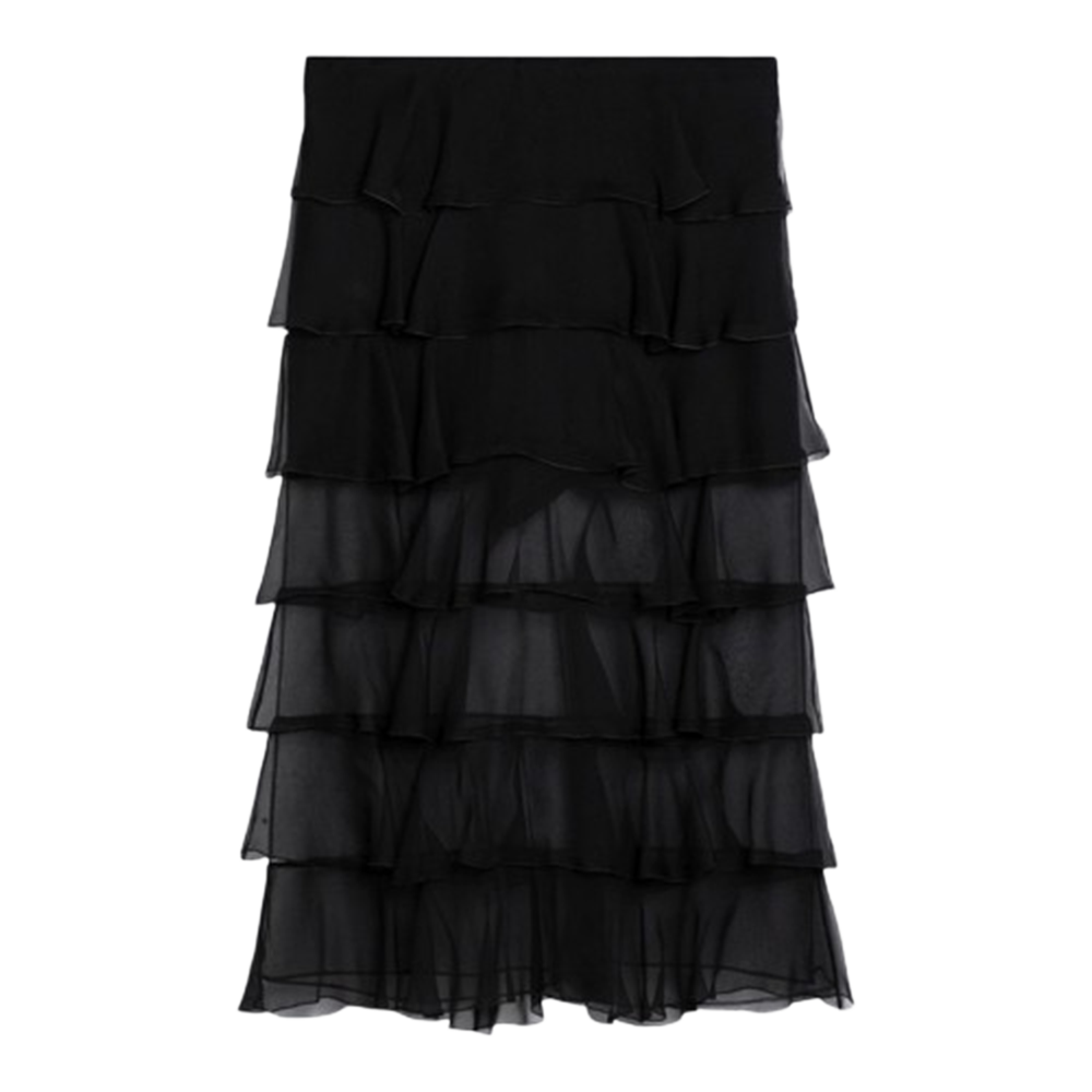 Silk Chiffon Black Skirt