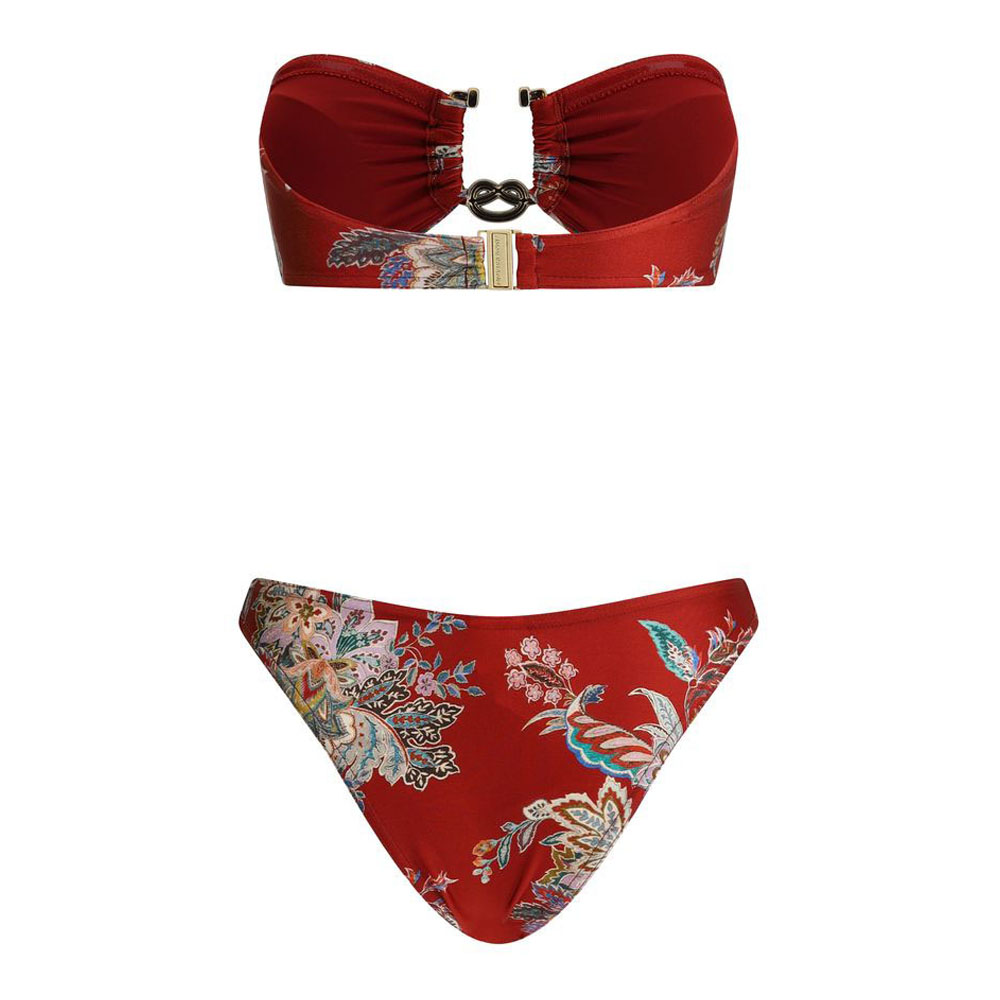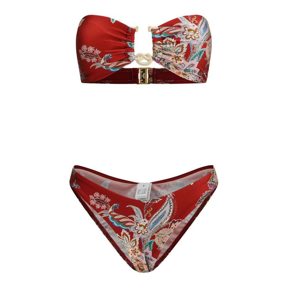 Zimmermann’s Rhiannon Knot Swimsuit features an elegant knot front with underwire and reinforcements at the side seams for optimal support. The seamless straps are removable and adjustable for a custom fit, while the bra is decorated with side and front gathers between the inserts. The classic bottom completes the design, providing a sophisticated and comfortable look for any beach occasion.